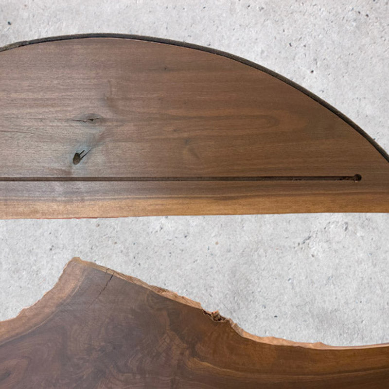 Materials: Solid Walnut face, authentic reclaimed iron wagon wheel rim