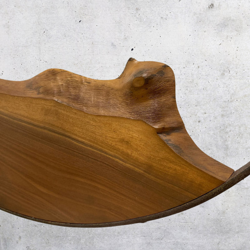 Each clock is one of a kind — no two pieces of walnut are ever alike. The iron frame retains its original patina, grounding the piece with a sense of history and strength.